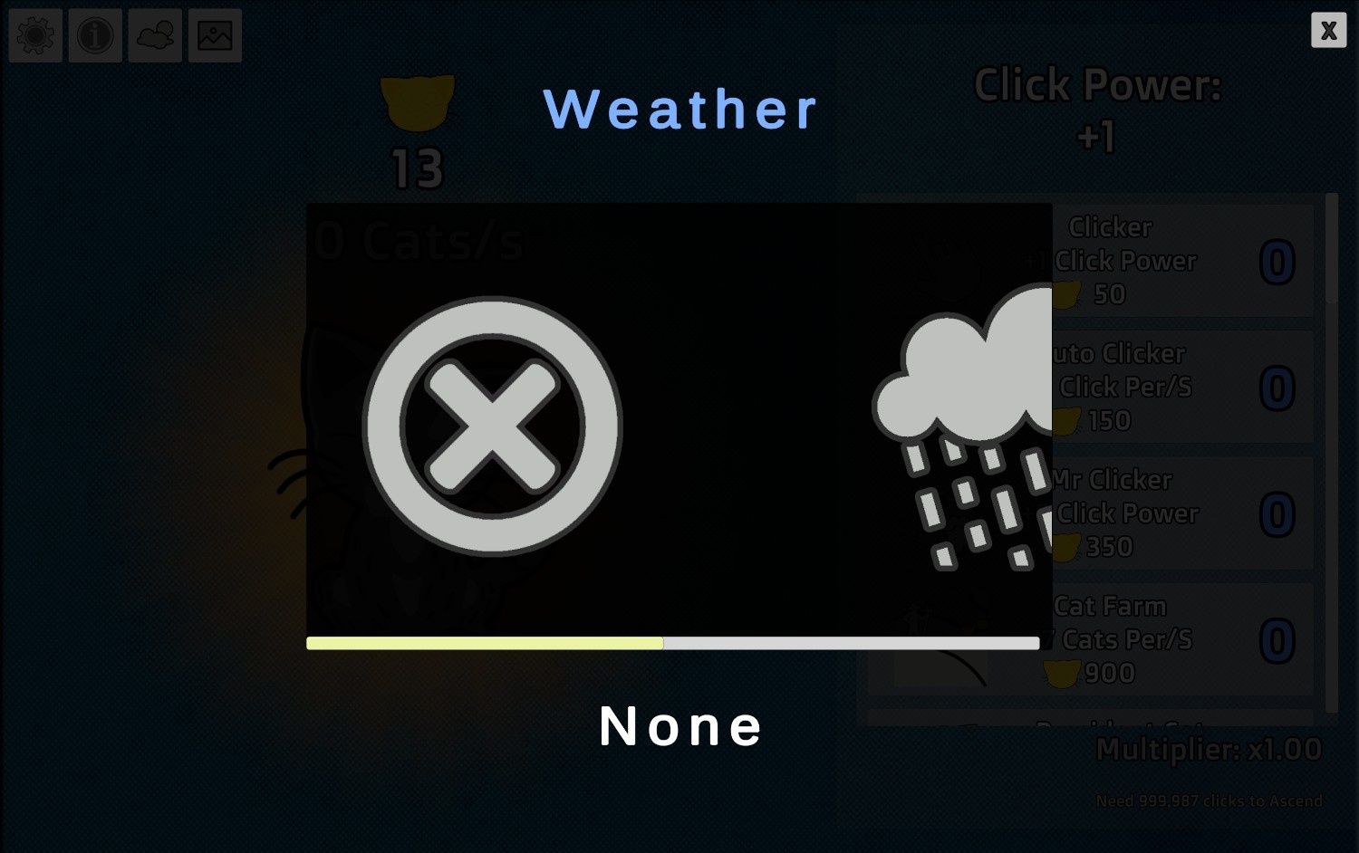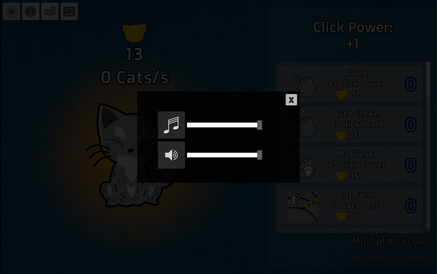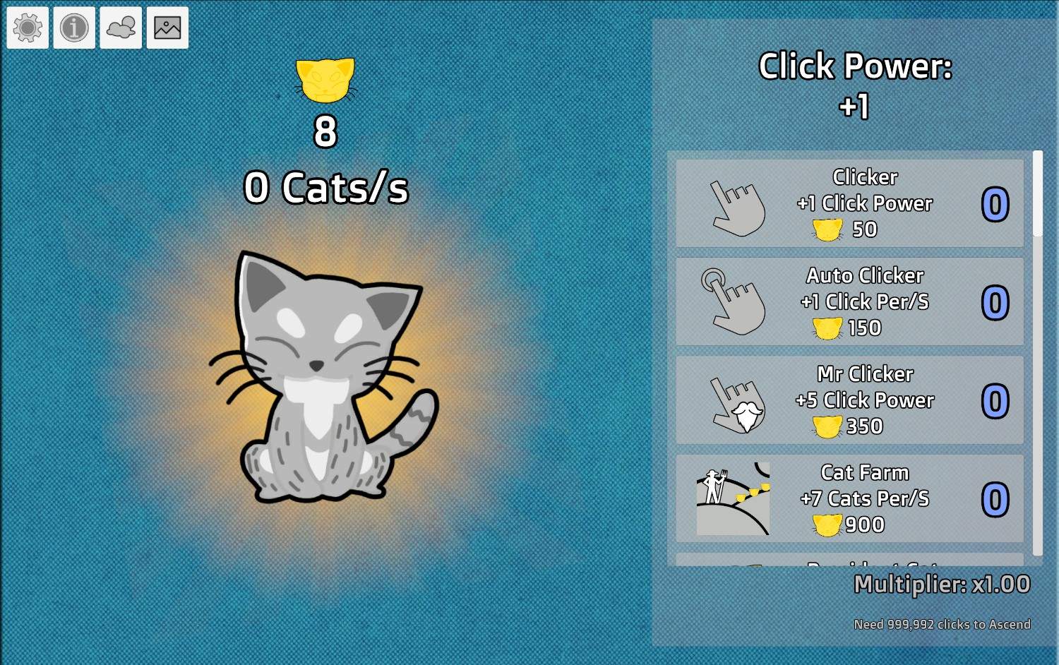 Cat clicker is a "clicker" type game, where you click to earn more cats. Eventually you will get enough cats for an upgrade, making you earn more cats for a click. And if you keep going and going, you will be the cat master!